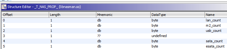 Anyway, after checking how the code works, it seems that the NAS information is stored on 3 shared memory objects - .nas.summary, .nas.diskstat and .nas.partstat - and is created by some other functions. For the Lookup_Nas_Info, only the first one seems to be used. The function is messy, but it seems to just copy part of the summary shared memory block into the specified buffer. I don’t really know what exactly is stored in that buffer, but from that the function seems to return, we’re dealing with at least some basic NAS information.